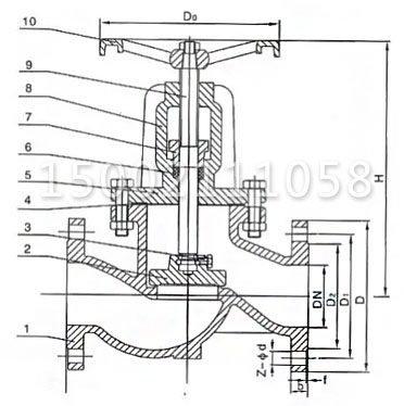 J41T鑄鐵截止閥主要外形及連接尺寸