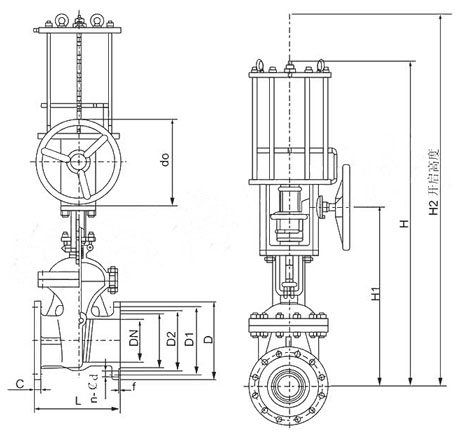 Z641H氣動(dòng)閘閥外形結(jié)構(gòu)尺寸